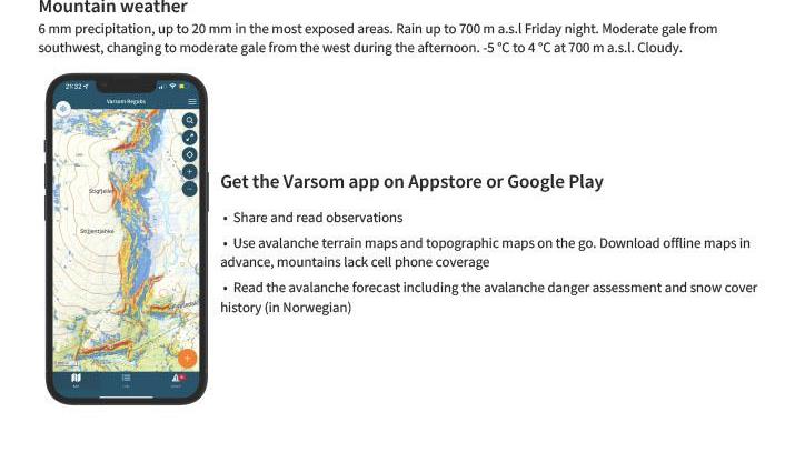 Forvarsel om mulighet for STOR snøskredfare (faregrad 4) for regionene nord for Saltfjellet Det meldes om snøskredfare fra NVE for Nordland. Det understrekes at meldingen er et forvarsel og ikke et fullstendig varsel.