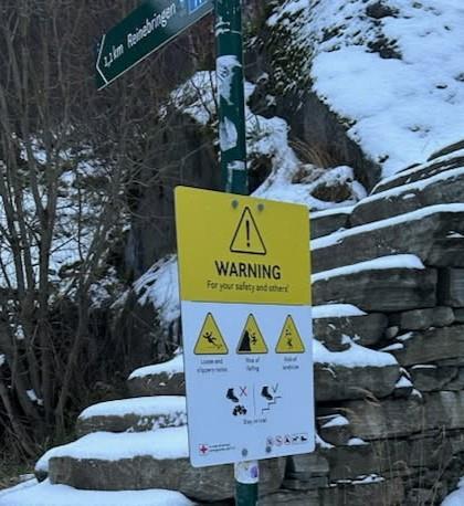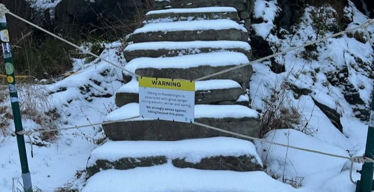 Nå er imidlertid snøen kommet, trappene er glatte og risikoen for ras, skred eller skliulykker øker.